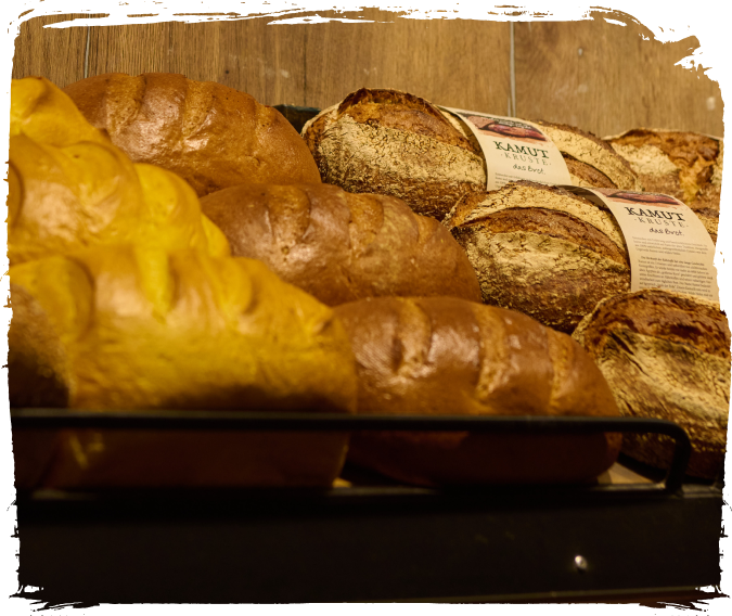 Zusätzlich gibt’s bei uns Spezialitäten wie zum Beispiel unsere Kamut-Kruste oder unsere Findlinge,