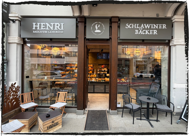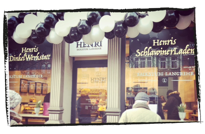Als kleiner Ableger der Bäckerei Langrehr steht HENRI für traditionelles Handwerk, familiäre Atmosphäre und den besonderen Geschmack unserer Dinkelbrötchen „Schlawiner“, die in drei Tagen und mit 48 Stunden Teigruhe entstehen.